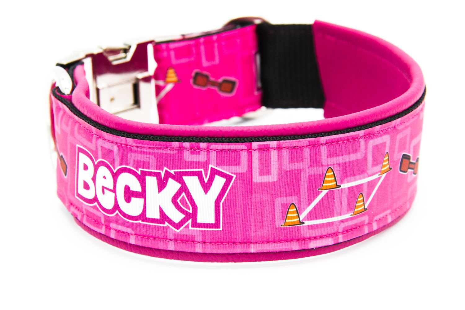 Du kannst deinen Hundesport aussuchen, der mit deiner Lieblingshunderasse auf deine Borte gedruckt wird. Dazu ist es (für eine kleine Aufwandsentschädigung) zudem möglich, noch den Namen deines Hundes mit auf die Borte zu platzieren.