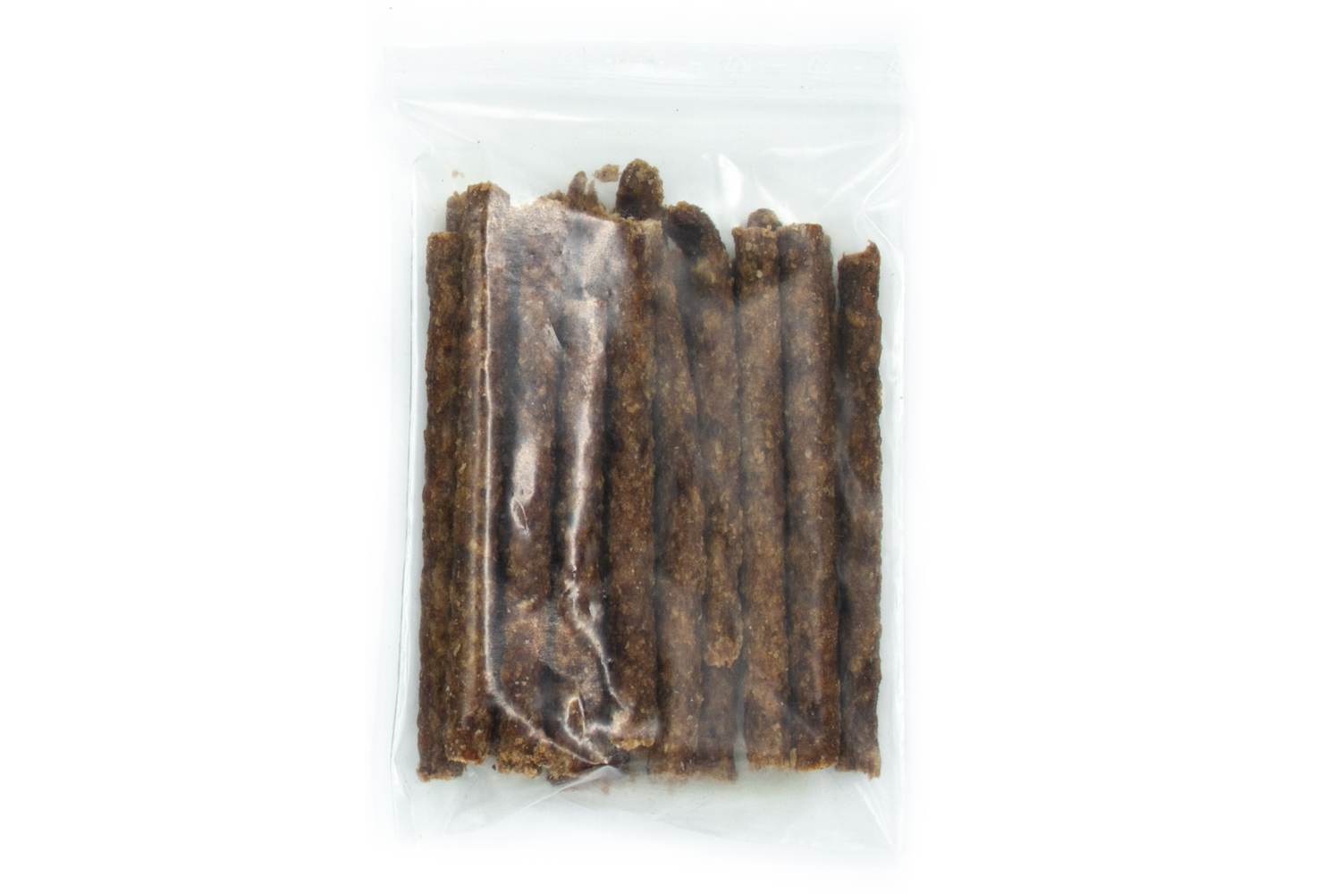 Die Fleischsticks haben nur die ausgewählte Proteinquelle und sind daher auch für Allergikerhunde geeignet. Sie kommen ohne Zusatzstoffe aus, da die wertvollen Inhaltsstoffe ausreichen, um für die Hunde einen leckeren und gut riechenden Kauartikel – frei von Geschmacksverstärker und Getreide – herzustellen. Durch die schonende Trocknung werden zudem keine Konservierungsstoffe eingesetzt: Das Fleisch wird gewolft in Form gebracht und durchläuft dann einen längeren, schonenden Trocknungspozess.