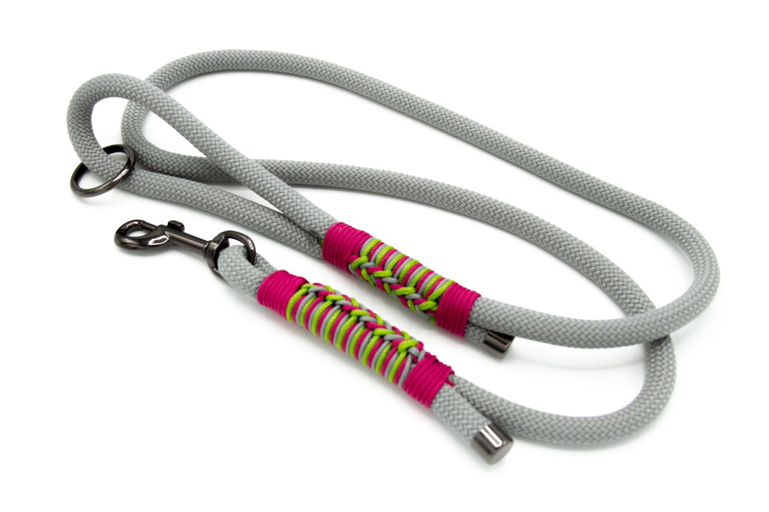 Die Leinen sind ca 130 cm lang und bekommen Mausgraue Karabiner bzw Ringe.