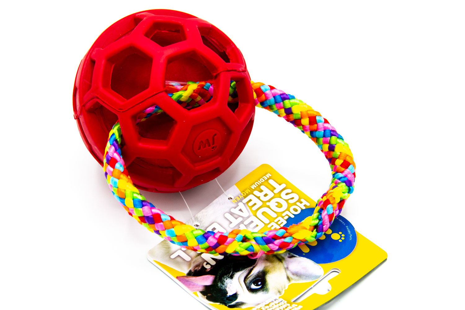 Der JW Treat N Squeak ist aus natürlichem dauerhaften Kautschuk gefertigt und hält einigen Zerrspielen stand.