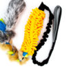 Die in Handarbeit genähten Herzchen sind mit Watte gefüllt. Der Mop ist aus Mikrofaser hergestellt, die zweite Seite des Herzchens besteht aus Softshell. Die Handschlaufe aus Gurtband ist mit Softshell unterlegt, so dass das Spieli angenehm in deiner Hand liegt und nicht einschneidet. Durch die Materialien kannst du das Hundespielzeug bedenkenlos bei 30 Grad in die Waschmaschine stecken, sollte es doch mal im Matsch landen oder vollgesabbert sein.